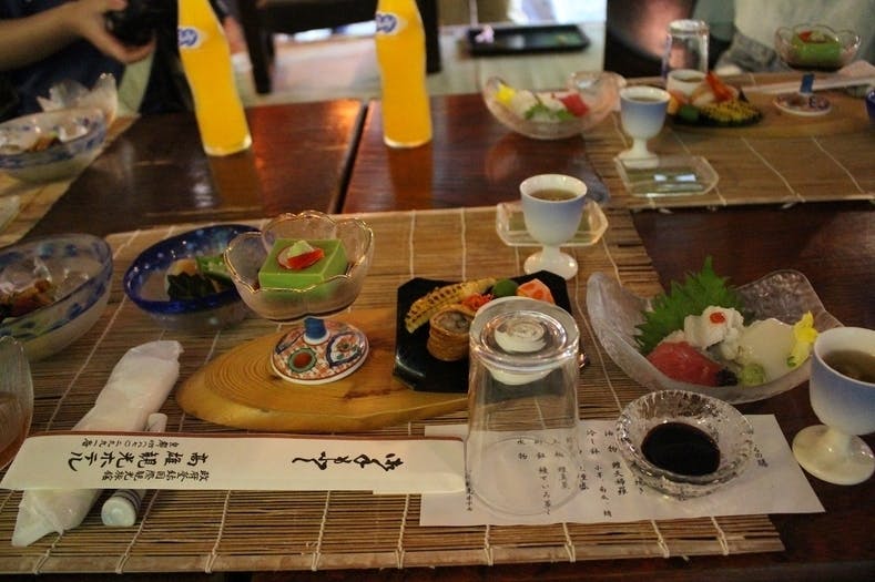 前半は、川床料理で舌鼓。...