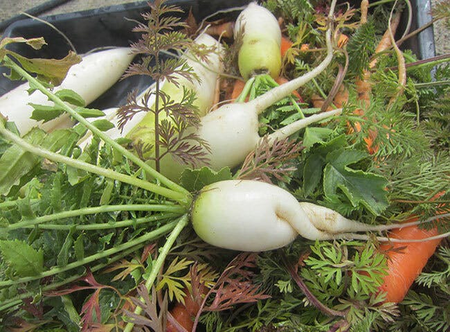 畑にできている、大根・ニンジンを全て収穫です。
