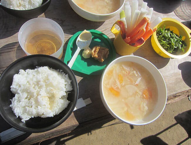 みんなで、ワイワイ食事づくり。食事タイム。