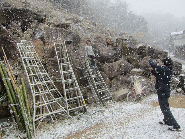 帰り際に急な雪。大きなボタン雪です。