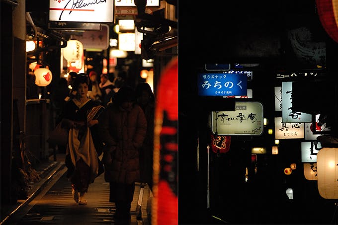 先述の通り、先斗町は江戸時代から続くまちです。かつてその細長い通りにはずらりとお茶屋さんが並び、夜になると暗い通りにぽつぽつと提灯がともり、風情ある景色を醸し出していました。
