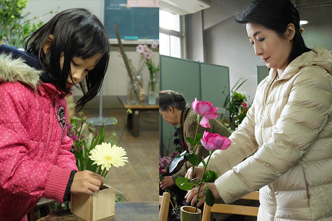 はじめまして。先斗町まちづくり協議会、事務局スタッフの西村良子といいます。本業の華道家の傍ら、先斗町のまちづくりのお手伝いをさせていただいております。2015年・2016年と、先斗町通の軒先をお花で彩る本イベント「先斗町 軒下花展」の担当として、セッティングや花いけの監修をさせていただきました。