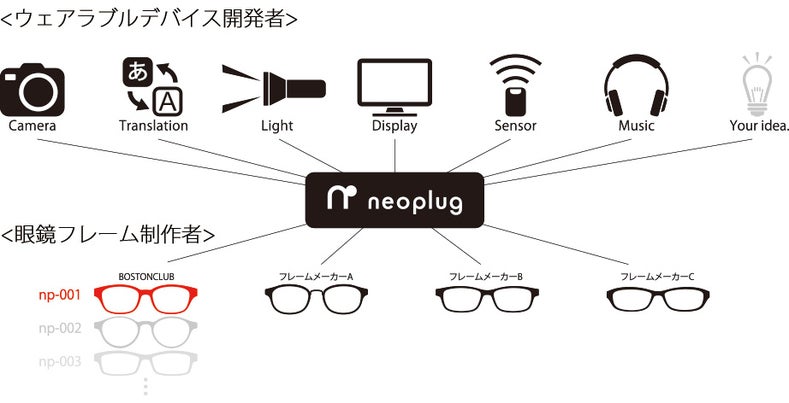 双方がこのネオプラグを利用することで、TPOに合わせた眼鏡フレームデザインと用途に合わせたデバイスの自由な選択が可能となります。