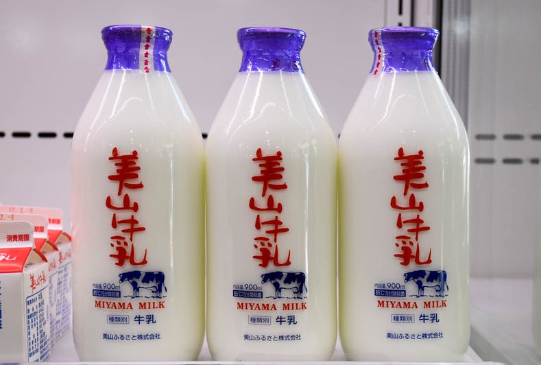 美山町は、西日本屈指の天然林が広がる芦生原生林や、清流・由良川など、自然環境が豊か。おいしい空気ときれいな水、静かな環境の中で飼育されている乳牛からうまれるのが、「美山牛乳」です。