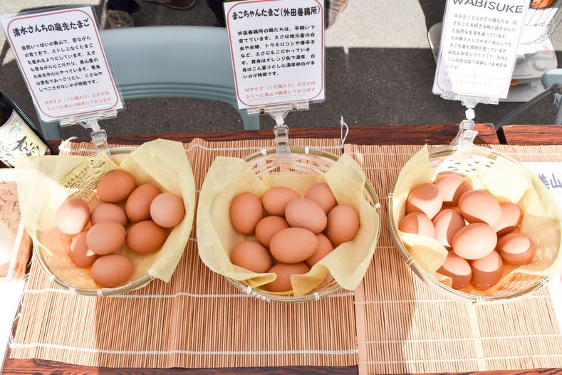 美山では、鶏が自由にのびのびと育ち産んだ「平飼い卵」も美味しいと評判です。鶏にストレスを与えることなく、手間ひまかけて商品化されています。