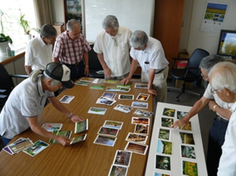 ▲袋井市 市制10周年記念 写真集「袋井の四季」の編集に取り組む写真部