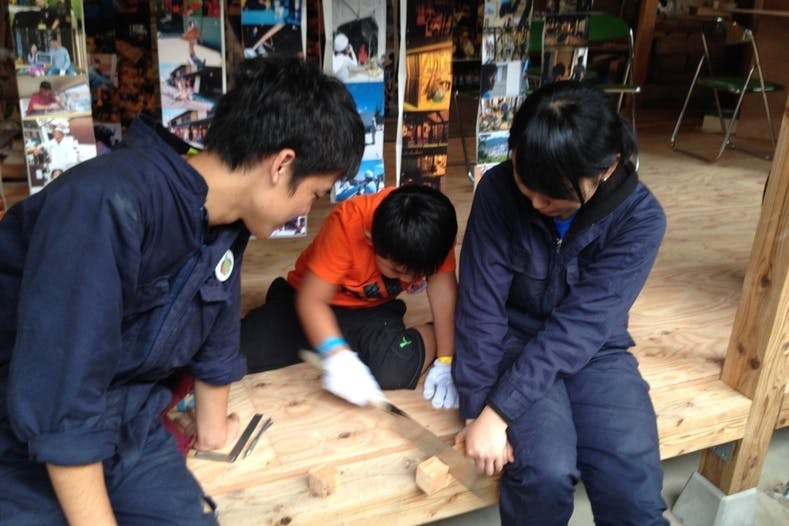私たちは改修中の古民家でワークショップを開き、子供たちと一緒に木工制作を行いました。