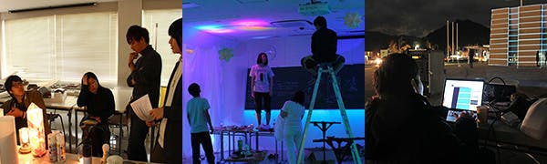 私たちは、mei -light space design group-(メイ ライトスペースデザイングループ)という、ライトアップやプロジェクションマッピングなど照明を用いたさまざまな空間演出を行っている学生団体です。