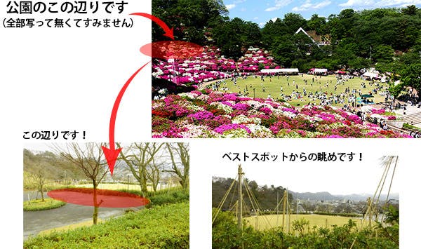 スカイランタンを打ち上げる芝生広場は、つつじが咲き誇るちょうど中心に位置し高低差がある円形劇場のような場所です。