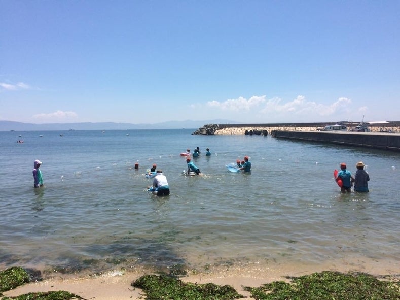 その後 明石市 江井ヶ島海岸に移動 海水浴、スイカ割り
