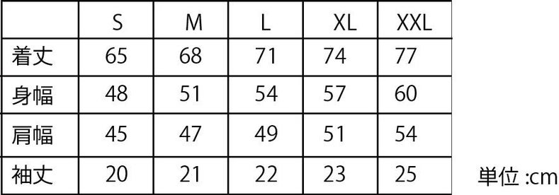サイズは以下の表をご参考に、S~XXLからお選びください。