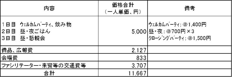 高校生・大学生一人当たりの参加費を4,000円にするため、原価11,667円との差額7,667円を補てんしたいです。