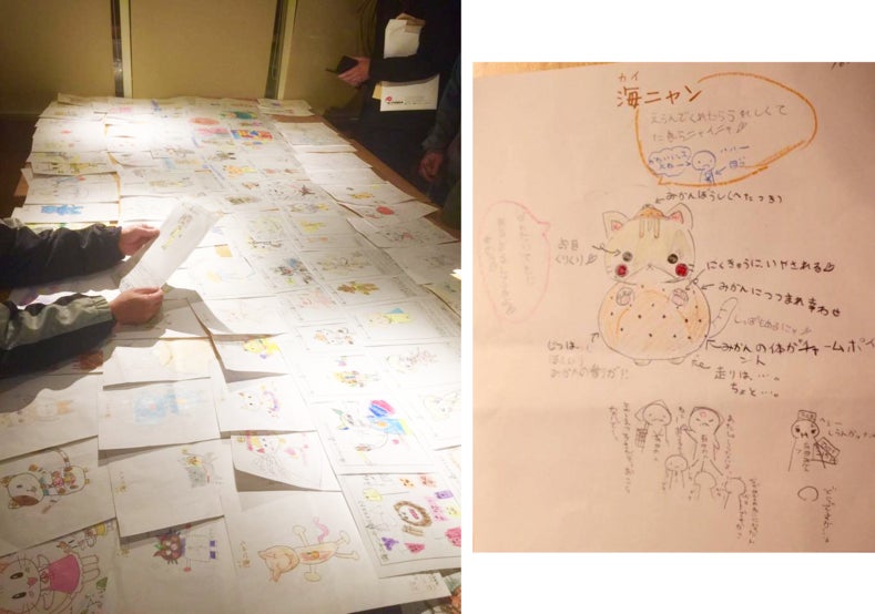 そこで、地元の子どもたちや大人も巻き込み、それぞれがイメージするお菓子の街、海南のキャラクター『海ニャン』を公募で考えてもらいました。