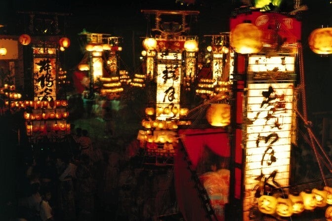 能登の祭りには、神輿の行く道を照らす巨大な灯篭―”キリコ”が欠かせません。