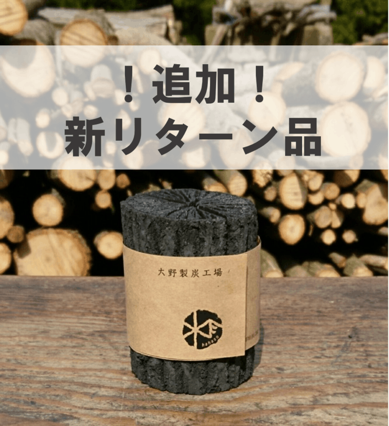 こちらのリターン品ですが、好評につき柞の炭の在庫がすでになく、今年の年末に再度、炭を焼き、ご用意させていただきます!
