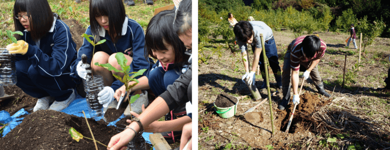 加えて東京で活動するNPO 法人からも支援をいただき、2009年から「おらっちゃの森づくり運動」として植林/育林を行っています。