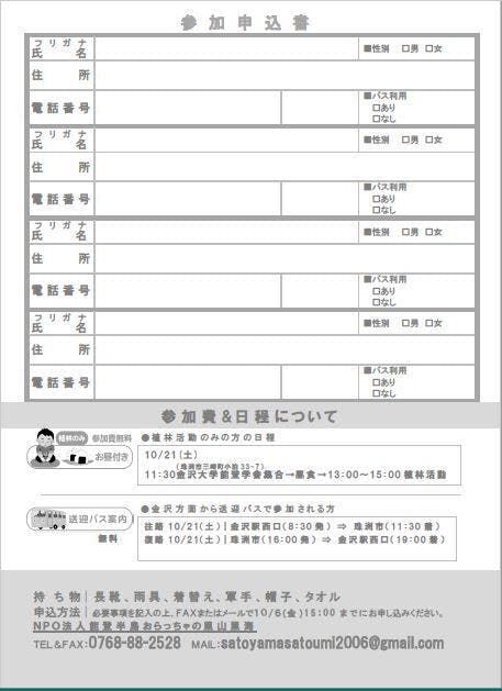 2018/09/28 17:27皆さま、お久しぶりです! 1年ぶりの更新となってしまいました; さて、今年も「おらっちゃの森づくり運動」が開催されます。 2009年から始まって、記念すべき10回目を迎えます。 ここまで続けてこれたのは、皆さまのおかげです。 本当にありがとうございます! 詳細はチラシにある通りですが、 10月27日(土)11:30~15:00で行います! 集合場所は金沢大学能登学舎です。 今年も500本の植林を目指します!! 申込締切りは10月5日(金)15:00となっております。 大野製炭工場facebookより申込書をダウンロードしてFAXするか、メールにてお申込みください。 https://www.facebook.com/notokikusumi/?ref=bookmarks 昨年は幸い雨も降らず、多くの方々に参加していただいたおかげで、約400本を植えることが出来ました。 今年も皆さんの参加をお待ちしております! もっと見る