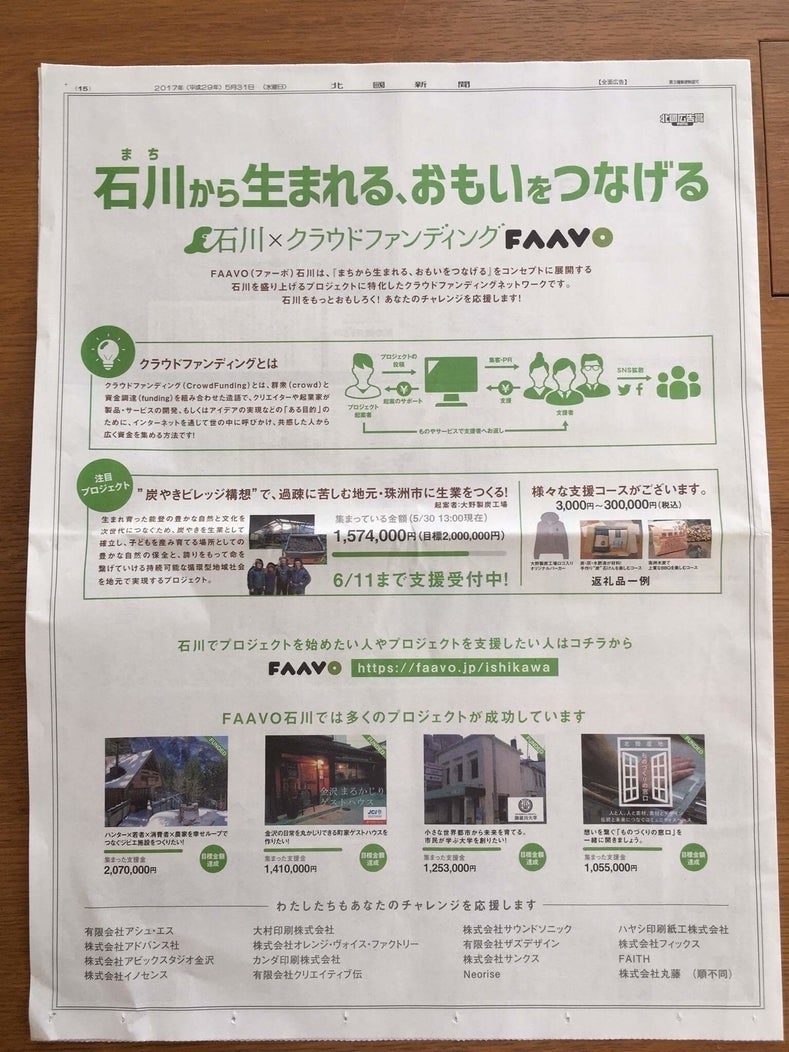 ご支援、ご協力を頂いている皆様、お陰様を持ちまして、100%を達成することができました。本当にありがとうございます。