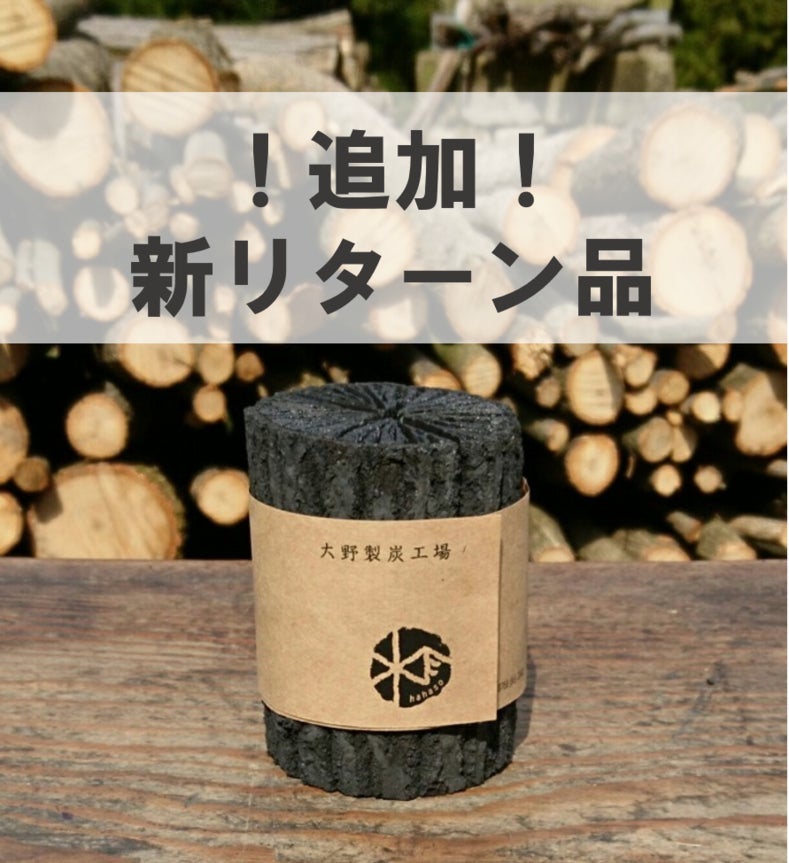 こちらのリターン品ですが、好評につき柞の炭の在庫がすでになく、今年の年末に再度、炭を焼き、ご用意させていただきます!
