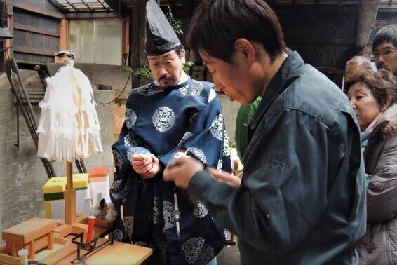 そこで2013年12月、宮司さんにオリジナルの祝詞をつくってもらい、火熾し神事を行いました。