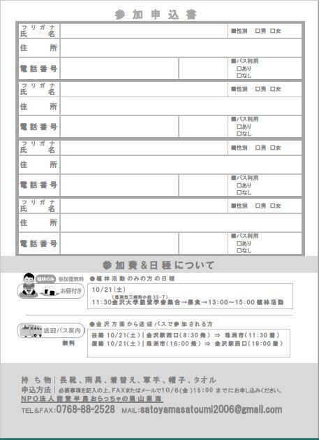 2018/09/28 17:27皆さま、お久しぶりです! 1年ぶりの更新となってしまいました; さて、今年も「おらっちゃの森づくり運動」が開催されます。 2009年から始まって、記念すべき10回目を迎えます。 ここまで続けてこれたのは、皆さまのおかげです。 本当にありがとうございます! 詳細はチラシにある通りですが、 10月27日(土)11:30~15:00で行います! 集合場所は金沢大学能登学舎です。 今年も500本の植林を目指します!! 申込締切りは10月5日(金)15:00となっております。 大野製炭工場facebookより申込書をダウンロードしてFAXするか、メールにてお申込みください。 https://www.facebook.com/notokikusumi/?ref=bookmarks 昨年は幸い雨も降らず、多くの方々に参加していただいたおかげで、約400本を植えることが出来ました。 今年も皆さんの参加をお待ちしております! もっと見る
