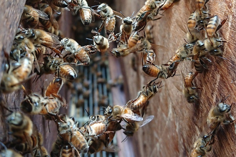 (僅かな隙間にも巣を造ろうとするみつばち)