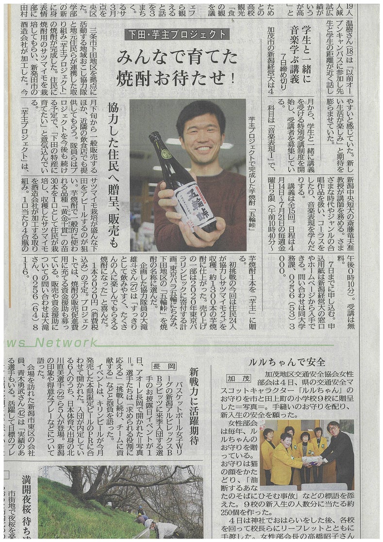 2017/04/12 16:44こんにちは! 4月に入っても寒い日が続いていましたが、 三条市下田地域にもようやく春の暖かさが近づいてきました! ご報告が遅れてしまいましたが、 先日4月5日(水)、新潟県内の新潟日報さん、三条新聞さん、越後ジャーナルさんが、 五輪峠の取組とクラウドファンディングのことを記事にしてくださいました!! ありがとうございます! 引き続き、よろしくお願いいたします!! 4月5日(水) 新潟日報さん 4月5日(水)三条新聞さん 4月5日(水)越後ジャーナルさん もっと見る日本経済新聞さんに掲載されました!