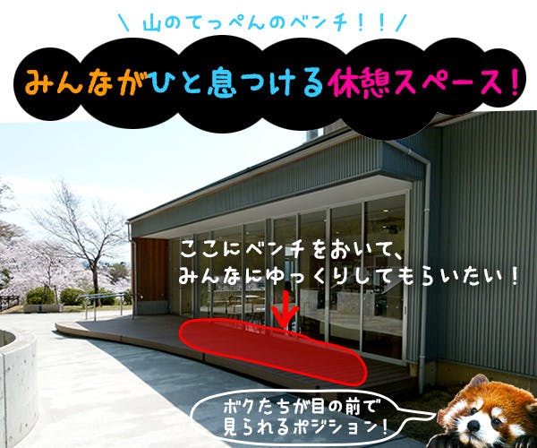 (ここまで来てもらうのに、長~い坂道を歩いてもらうんだ。山の上でながめもいいし、ちょっと休憩してもらいたいなぁ)