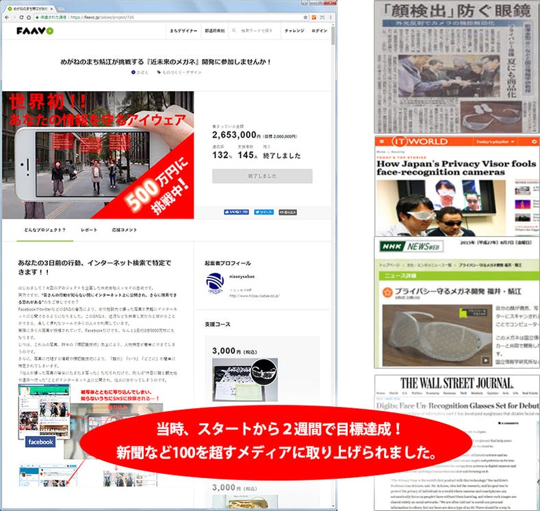 製品化にあたっては金型の費用や材料費を集めることと、プライバシーバイザーの必要性を広く周知する目的で、FAAVOさばえを利用しました。