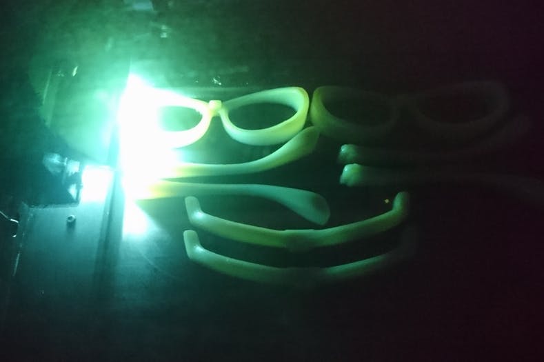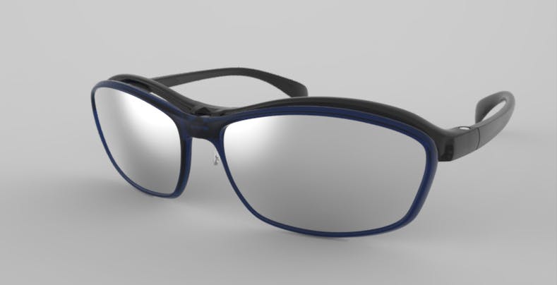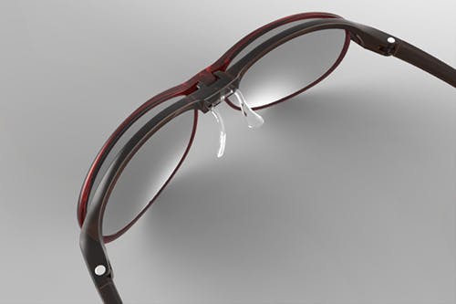 電源を必要とせず人物の特定を防ぐこのメガネは、その機能を持つため独特な形状をしています。