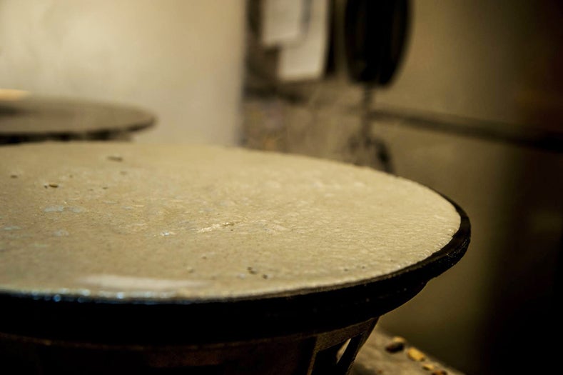 ガレット生地を作るときはそば粉と水だけで作っていますが、そば粉と水の割合を変えたり、うまくパリッと焼きあがるように日々独自に研究を重ねてきました。フランス・ブルターニュではどのような生地の配合なのか、またガレットをどう焼いているのかを教えていただく予定です。