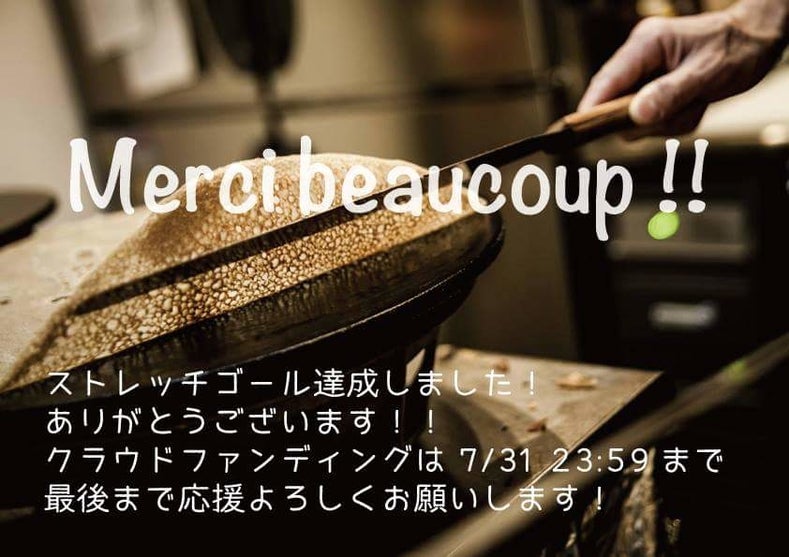 2018/07/30 02:08おかげさまでストレッチゴール達成しました!! ありがとうございます!本当にありがとうございます! 支援の数だけ気合いが入ります。 これだけ応援してくれる人がいるとは・・・本当に感謝でいっぱいです。 正直泣きそうです(いや、ちょっと泣きました) クラウドファンディングは早いものでもうあと1日。 7/31(火)23:59までとなっています。 あと少しお付き合いください! そして、今後もクレープリー・ルポを応援してください! よろしくお願い致します! もっと見る