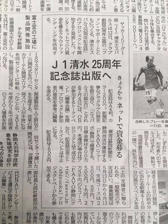 この度は、清水エスパルスのクラブ創設25周年企画『ファン・サポーターとともにつくる、清水エスパルス25周年記念誌』プロジェクトにご協力いただき、誠にありがとうございます。