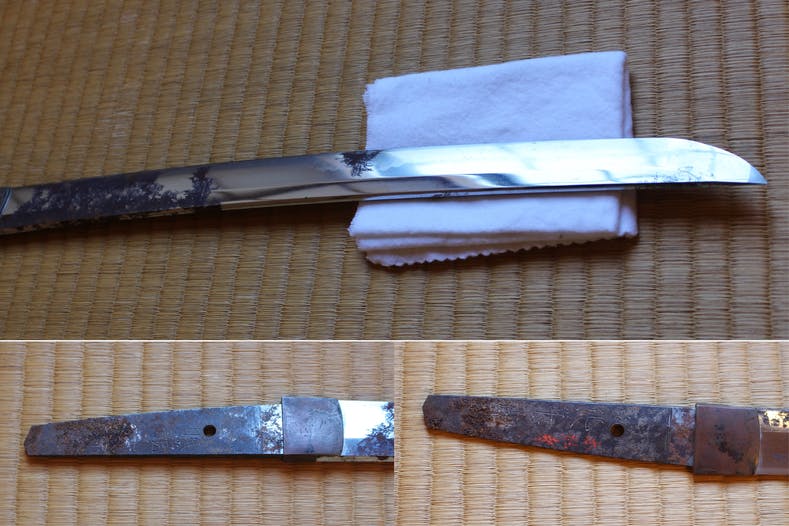▲⎯⎯錆など傷みが目立つ実刀 銘「眠竜子壽」