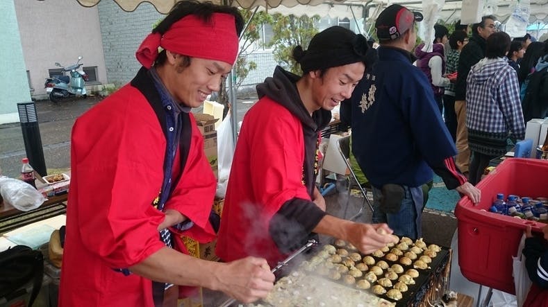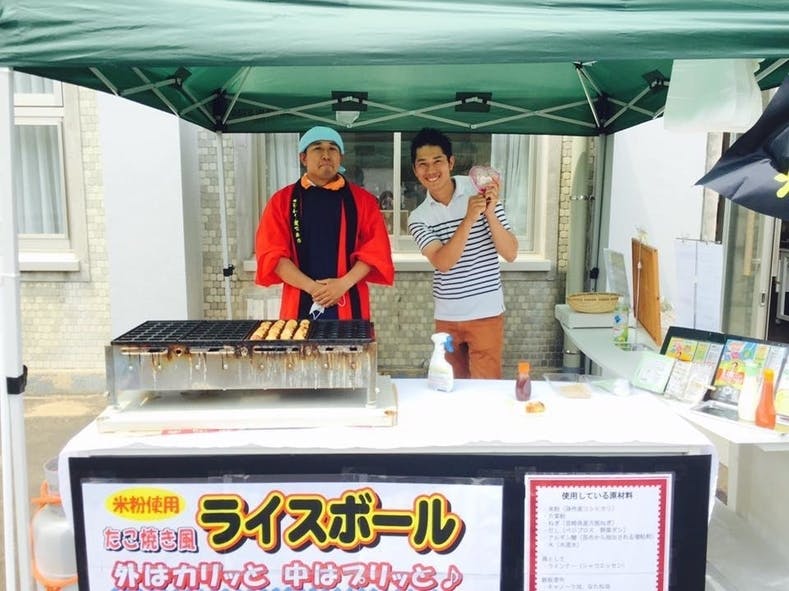 (刈羽村のイベントで米粉たこ焼きを出店)