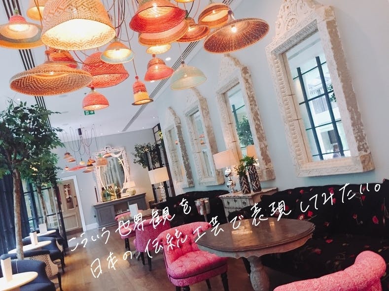 現在、壁のペイント、西陣織のベンチ、漆塗りのテーブルなどを予定しています。
