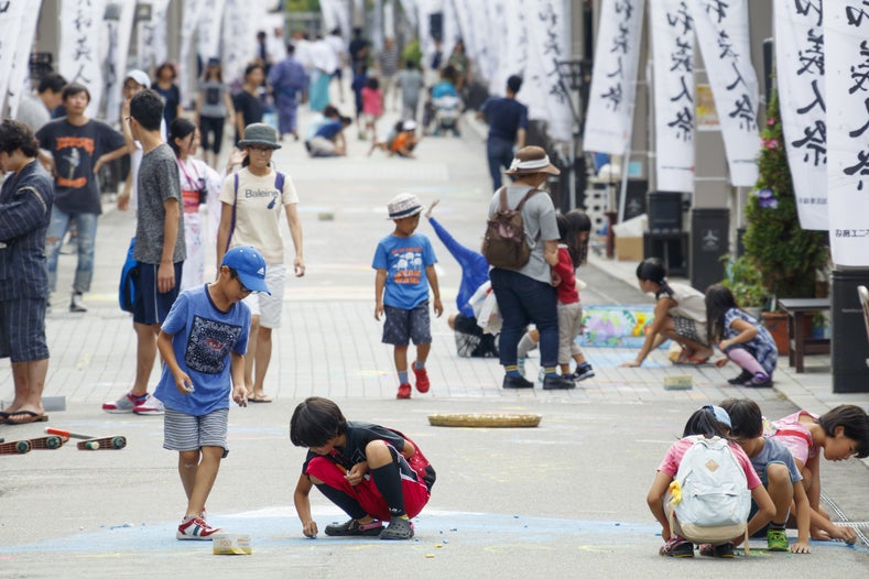 ※【カミフルイベント】商店街道路を歩行者天国にしてチョークで落書き