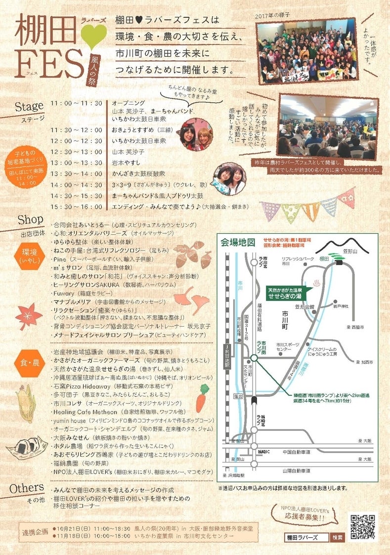 今回8団体に音楽の出演、約28団体に食、いやしで出店いただけることになりました。