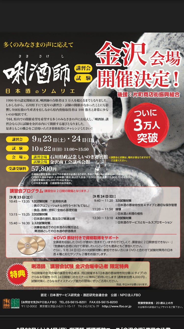 18年ぶりにここ金沢で、唎酒師講座&試験も開催されます!