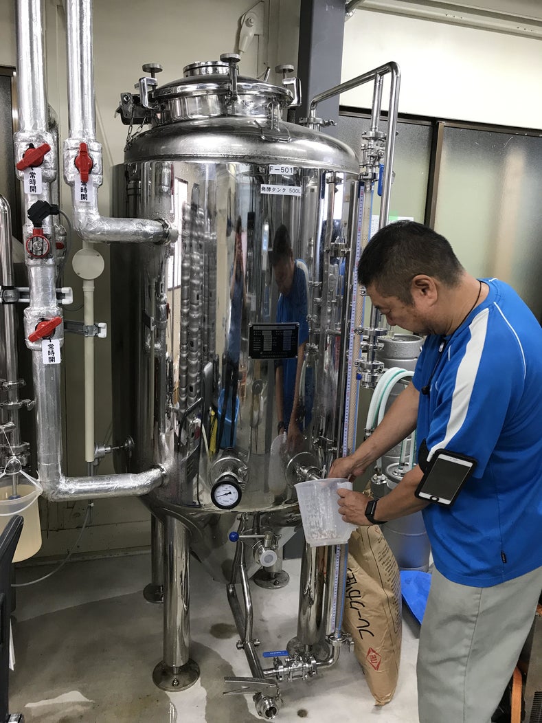 まずは原材料について、ビール酵母ではなく吟醸香を醸す日本酒酵母を使用し、通常の麦芽に加えて米麹も使用します。