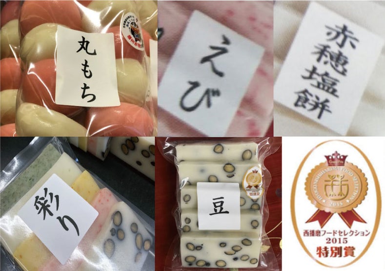 完成したのが、「丸もち」「えびもち」「うるうもち」、赤穂の特産を使った「塩もち」「みかんもち」など14種類のお餅です。