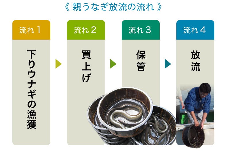 2014年、浜松うなぎ料理専門店振興会、浜名湖養魚漁業協同組合、浜名漁業協同組合、浜松うなぎ販売組合は、浜松市と湖西市の協力を得て、「浜名湖発 親うなぎ放流連絡会」を立ち上げ、資源回復のための活動を始めました。