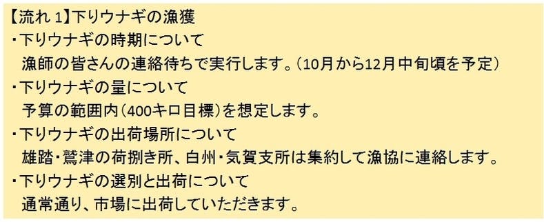 静岡県は今年度、浜名湖水産資源回復事業費のうち、親うなぎ放流事業支援として50万円を計上しています。県や市と連携することで今まで以上に推進力を高めることができます。