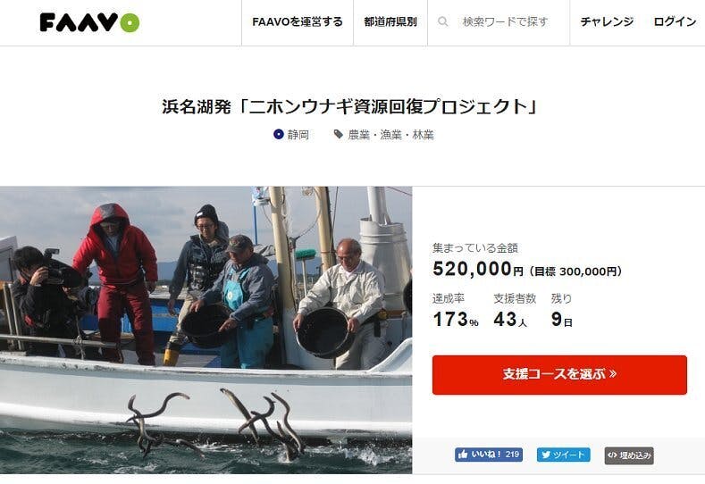 いよいよ11月からはじまる親うなぎの買い付けを前にその資金の一部をクラウドファンディングのFAAVOを活用して広く私たちの活動へのご理解を広め、ご支援いただくプロジェクトも残すこと9日間となりました。