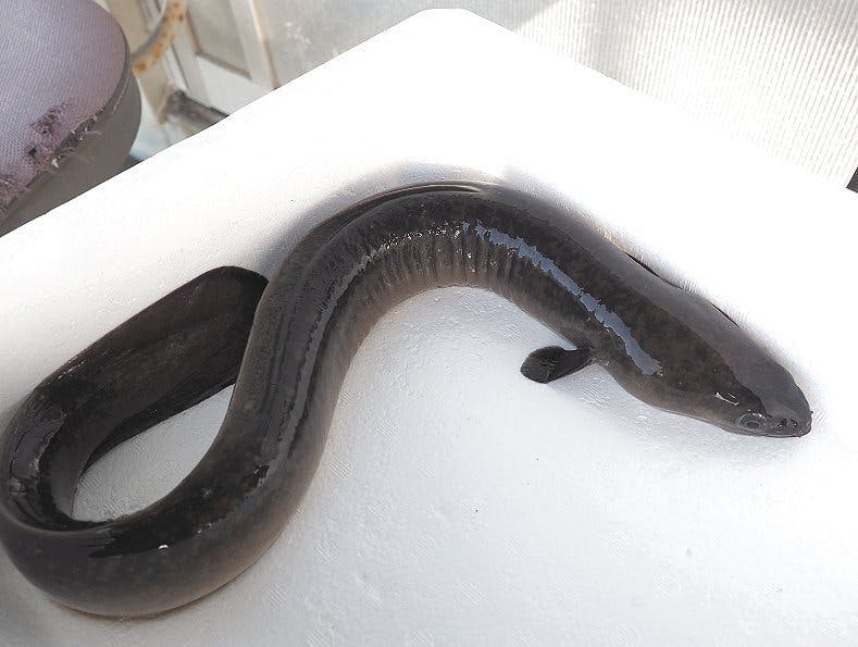 豊かな浜名湖はニホンウナギの他に育てば体長2メートルにも達するオオウナギが生息しています。