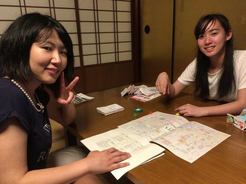 ↑今回のプロジェクトをやるにあたって仲間になってくれた学生と、人生ゲームを遊びながらブラッシュアップ中です!