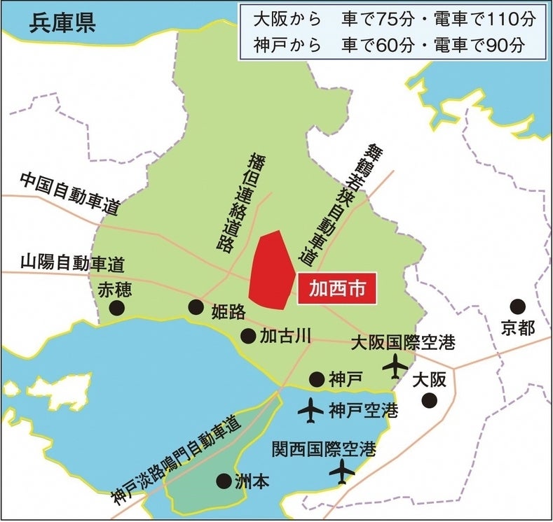 わたしたちのまち加西市は、兵庫県のほぼ中央、播磨地域にある人口約45,000人の市です。