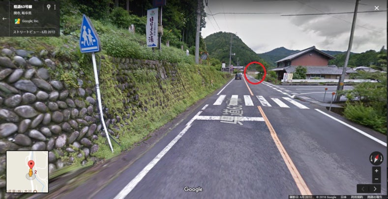 (上之保方面に向かい、上之保温泉の看板と小さな電光掲示板が付近。)