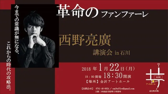 1月22日石川に西野亮廣さんがきます。