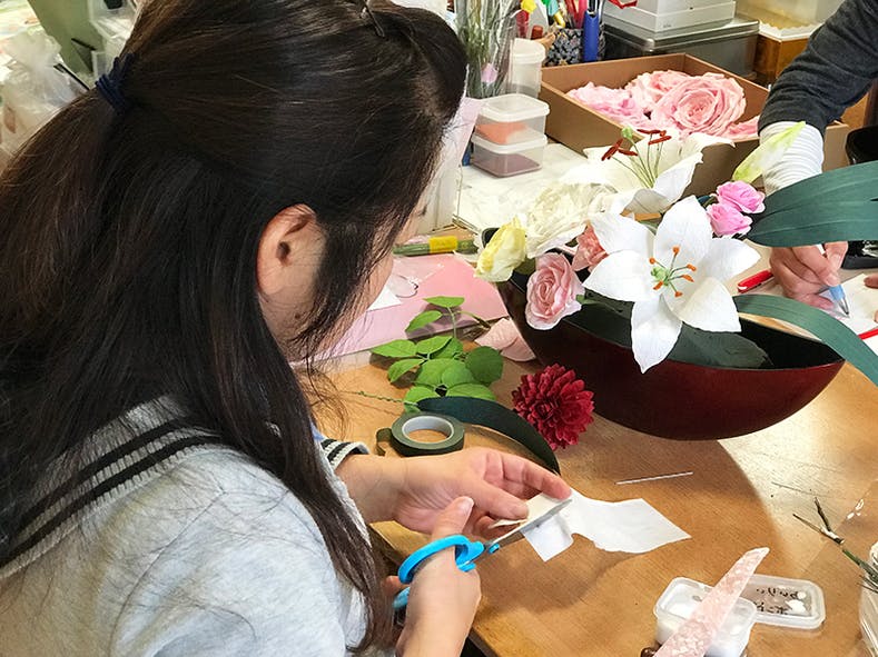 黙々と作る和紙乃華ですが、それぞれのパーツができ、それが組み合わさって一つの花になり、さらにそれが一つの作品になる。